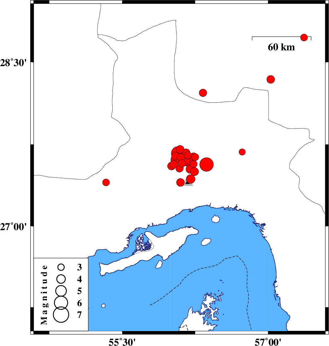 2021/11/14 12:08:36.9 15:38:36.9 27.56556.36715 ML6.4 Hormozgan Province, 43 km North of Bandar-e abbas