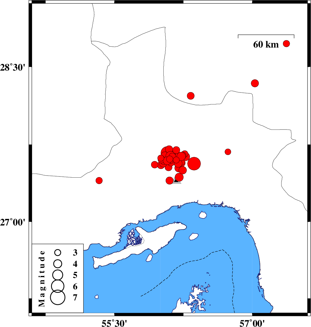2021/11/14 12:08:36.9 15:38:36.9 27.56556.36715 ML6.4 Hormozgan Province, 43 km North of Bandar-e abbas