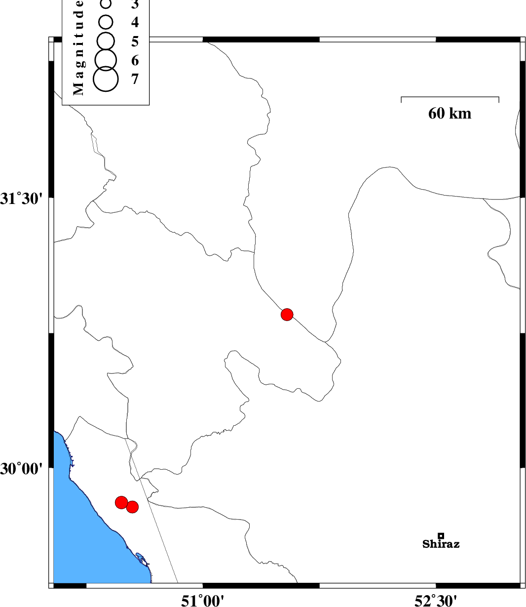 | 2021/11/15 | 00:21:24.9 | 03:51:24.9 | 29.805 | 50.476 | 16 | ML3.6 | Bushehr Province, 26 km North of Bandar-e genaveh | ||