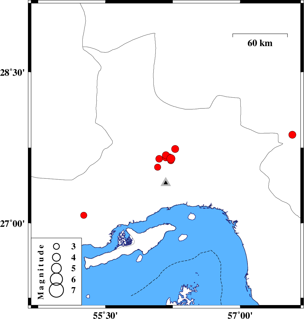 2021/12/03 06:20:16.7 09:50:16.7 27.62456.22910 ML3.4 Hormozgan Province, 49 km North of Bandar-e abbas