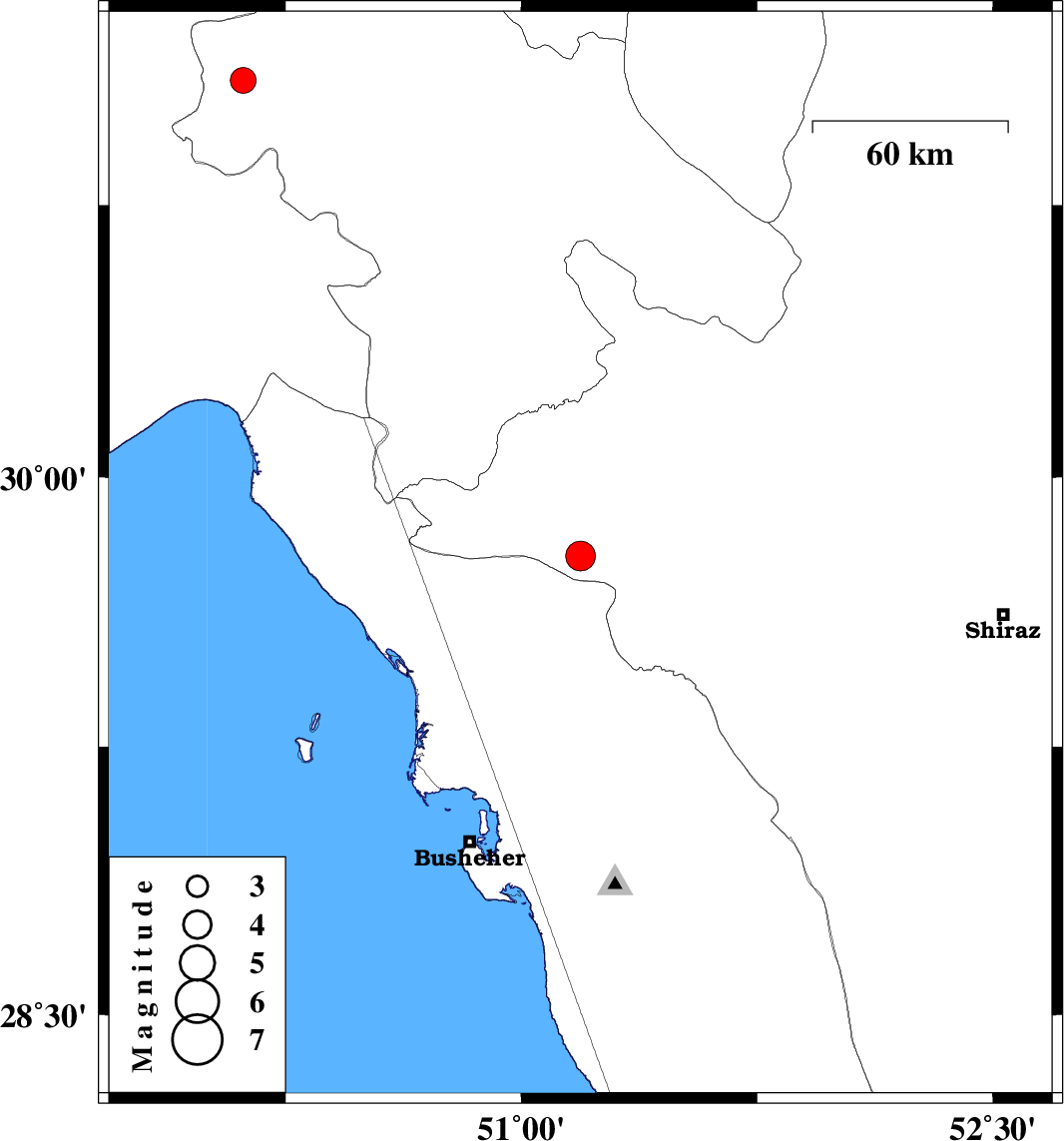 | 2021/12/14 | 09:12:55.8 | 12:42:55.8 | 29.781 | 51.188 | 12 | ML4.2 | Fars Province, 58 km North of Borazjan | ||