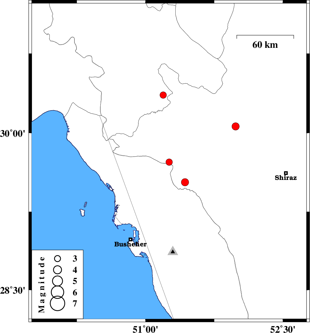 | 2021/12/22 | 00:06:23.2 | 03:36:23.2 | 29.722 | 51.258 | 12 | ML3.2 | Fars Province, 40 km North-West of Kazerun | ||