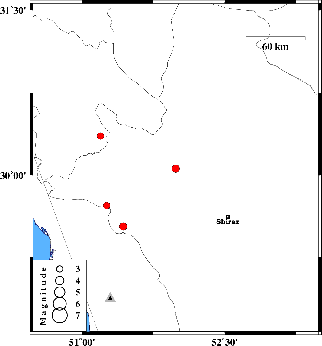| 2021/12/22 | 00:06:23.2 | 03:36:23.2 | 29.722 | 51.258 | 12 | ML3.2 | Fars Province, 40 km North-West of Kazerun | ||