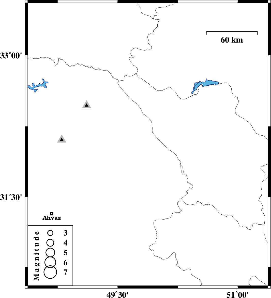 | 2021/12/26 | 22:04:44.5 | 01:34:44.5 | 32.049 | 49.877 | 12 | ML3.1 | Khoozestan Province, 24 km North of Izeh |