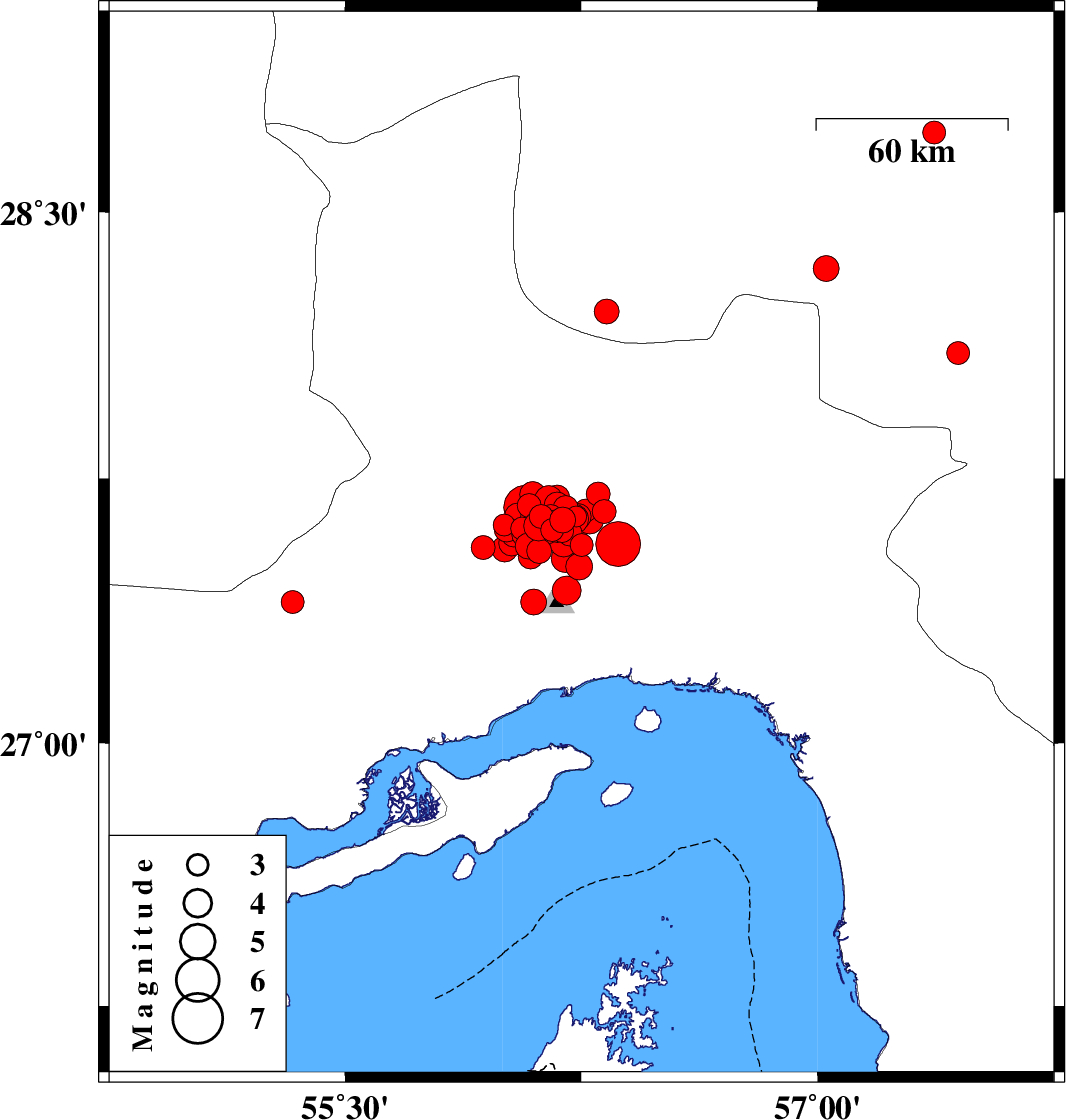 2021/11/14 14:24:16.6 17:54:16.6 27.50156.24310 ML3.8 Hormozgan Province, 35 km North of Bandar-e abbas