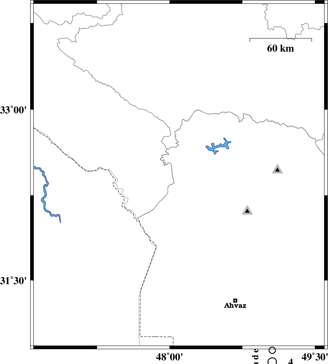 | 2022/01/05 | 00:48:43.5 | 04:18:43.5 | 32.419 | 48.096 | 12 | ML3.3 | Khoozestan Province, 24 km -West of Andimeshk |