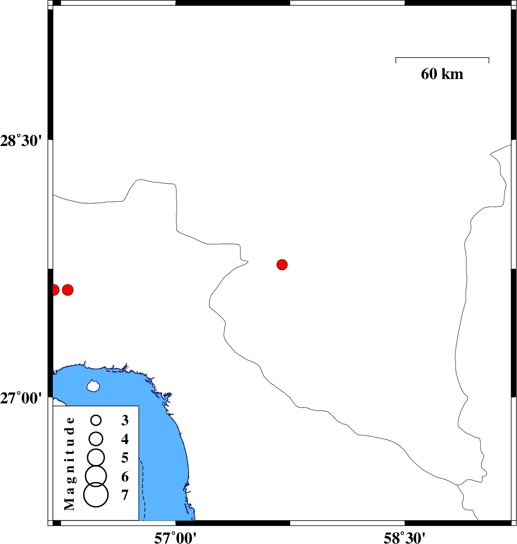 | 2022/01/08 | 04:45:37.8 | 08:15:37.8 | 27.627 | 56.294 | 12 | ML3.3 | Hormozgan Province, 49 km North of Bandar-e abbas |