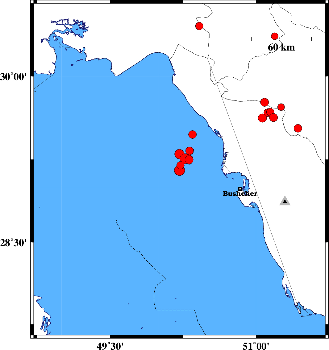 2022/01/16 20:14:12.7 23:44:12.7 29.24850.31112 ML3.8 Persian Gulf, 41 km South-West of Bandar-e genaveh