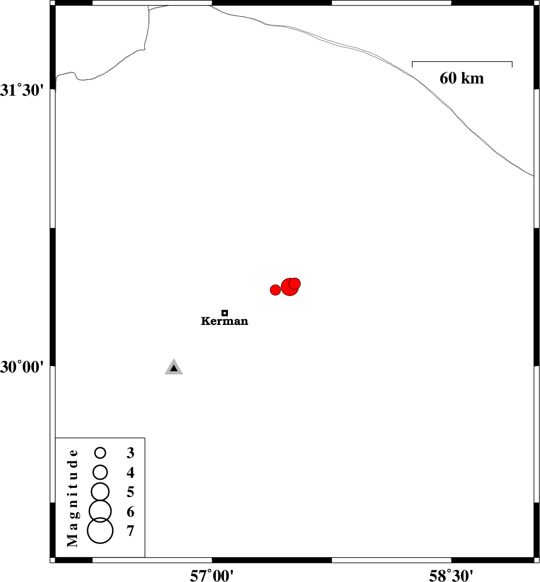| 2022/01/16 | 07:52:15.2 | 11:22:15.2 | 30.413 | 57.396 | 12 | ML3 | Kerman Province, 33 km North-East of Kerman | ||