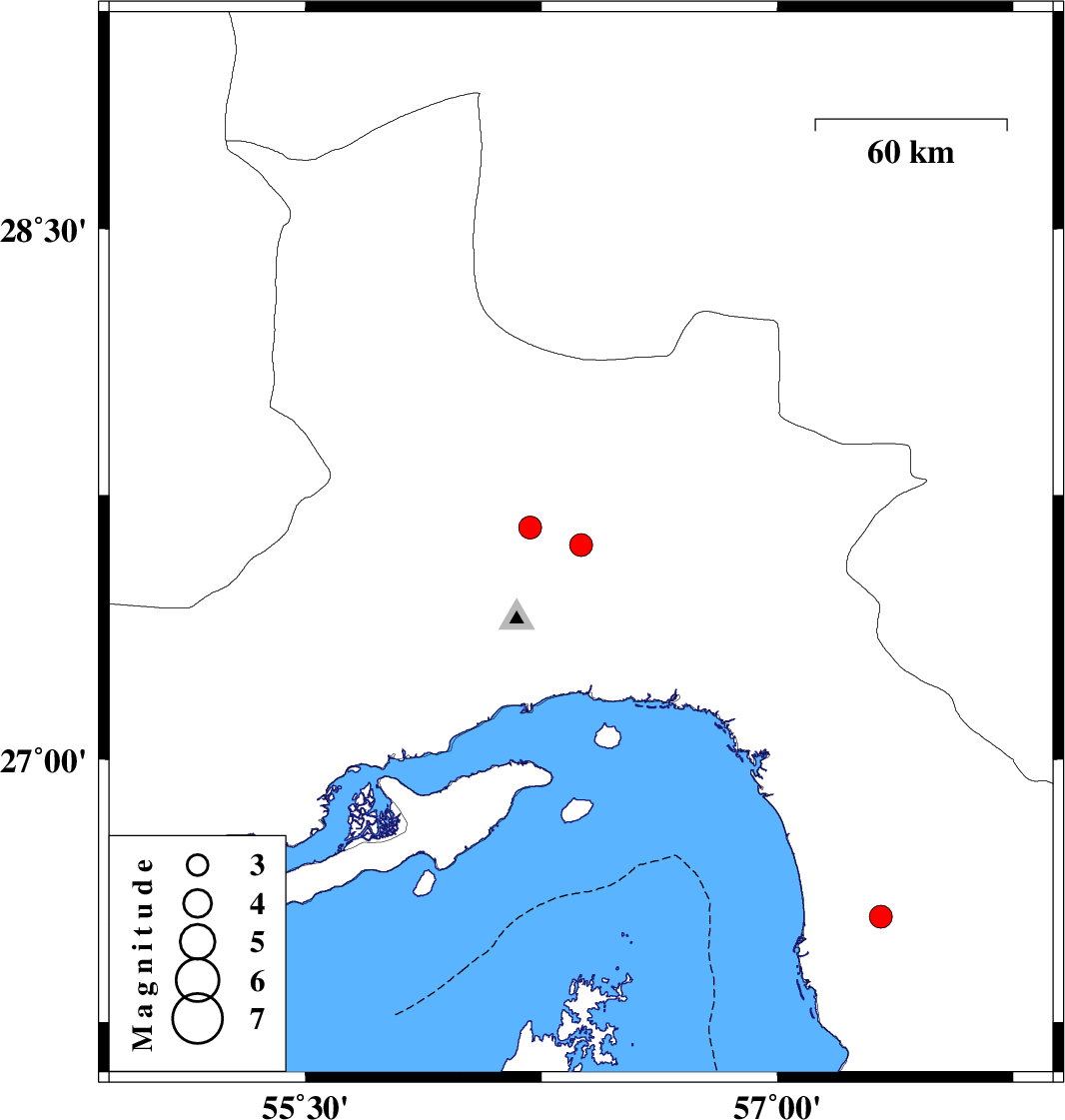 | 2022/01/18 | 00:07:42.7 | 03:37:42.7 | 26.552 | 57.329 | 12 | ML3.2 | Hormozgan Province, 71 km South-East of Minab | ||