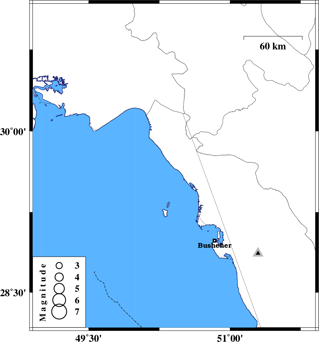 | 2022/01/30 | 23:47:45.4 | 03:17:45.4 | 29.672 | 50.406 | 12 | ML3.3 | Bushehr Province, 15 km -West of Bandar-e genaveh |