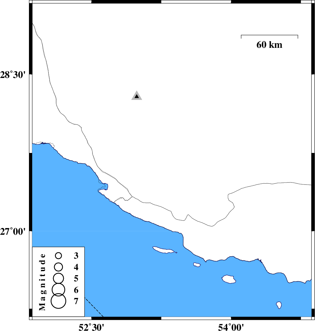 | 2022/01/30 | 23:56:37.3 | 03:26:37.3 | 27.672 | 53.364 | 12 | ML3.6 | Fars Province, 42 km North-East of Lamerd |