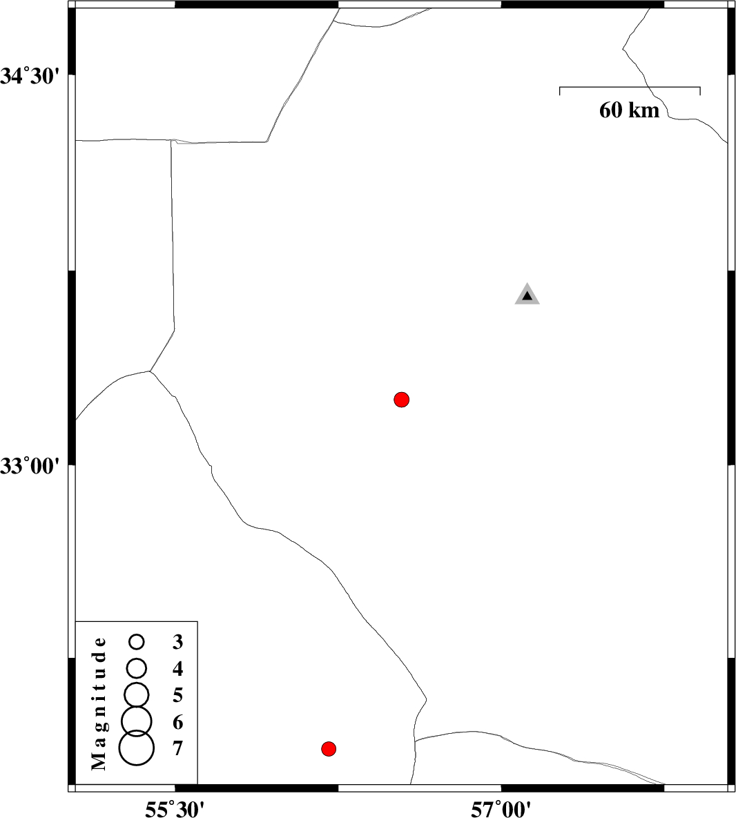 | 2022/02/03 | 21:21:08.2 | 00:51:08.2 | 33.253 | 56.541 | 12 | ML3.1 | Yazd Province, 53 km South-West of Tabas | ||
