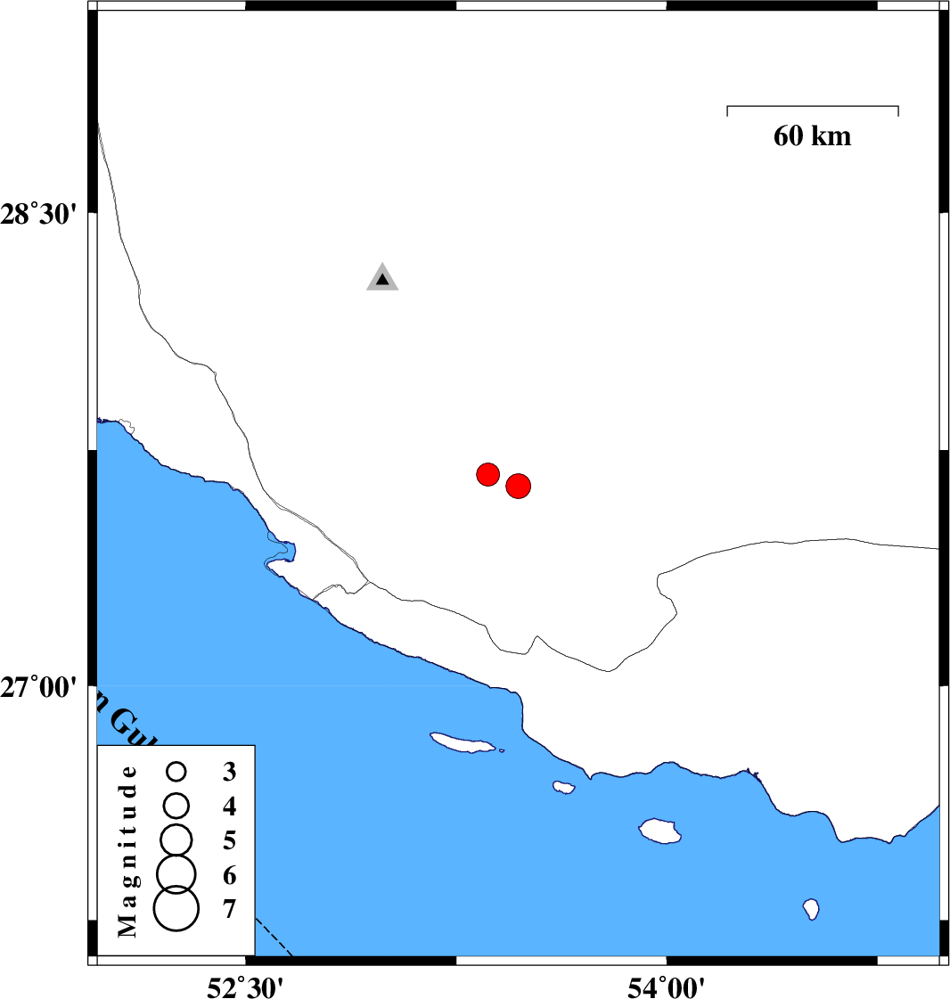 | 2022/01/30 | 23:56:37.3 | 03:26:37.3 | 27.672 | 53.364 | 12 | ML3.6 | Fars Province, 42 km North-East of Lamerd |