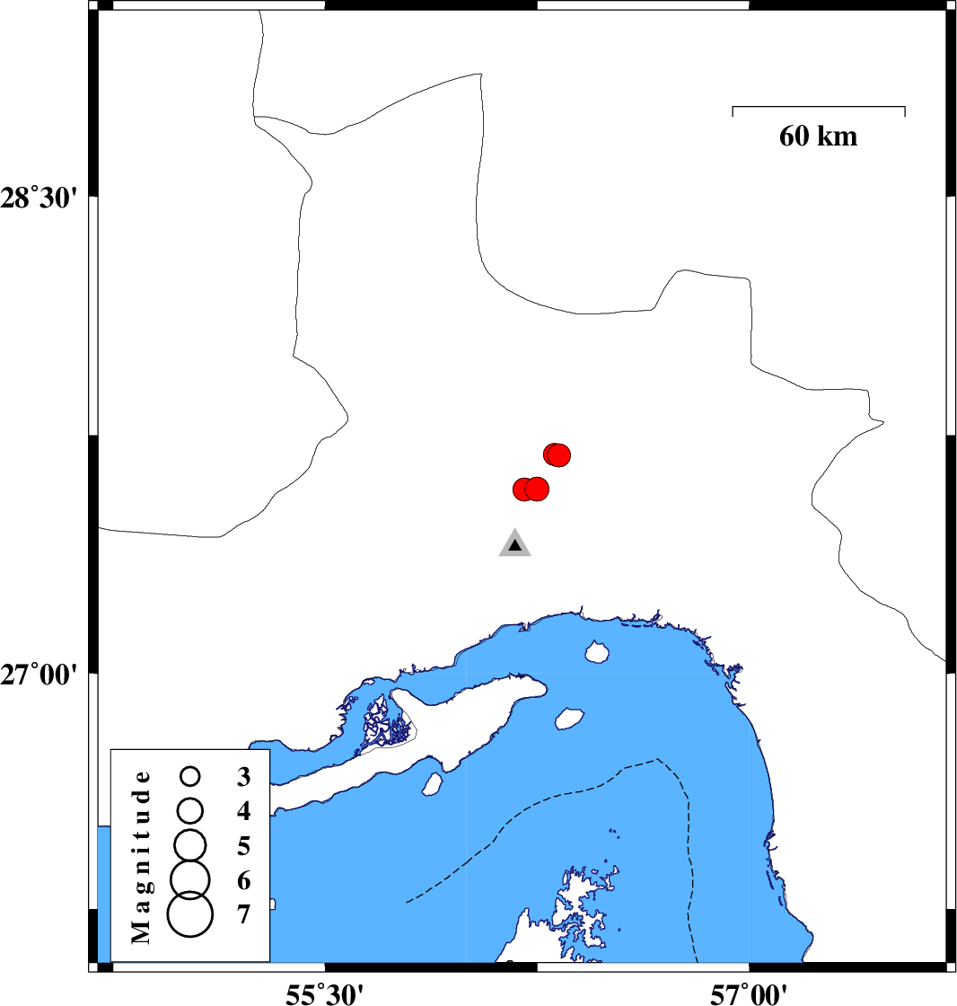 | 2022/02/07 | 23:55:58.9 | 03:25:58.9 | 27.58 | 56.196 | 15 | ML3.8 | Hormozgan Province, 45 km North of Bandar-e abbas | ||