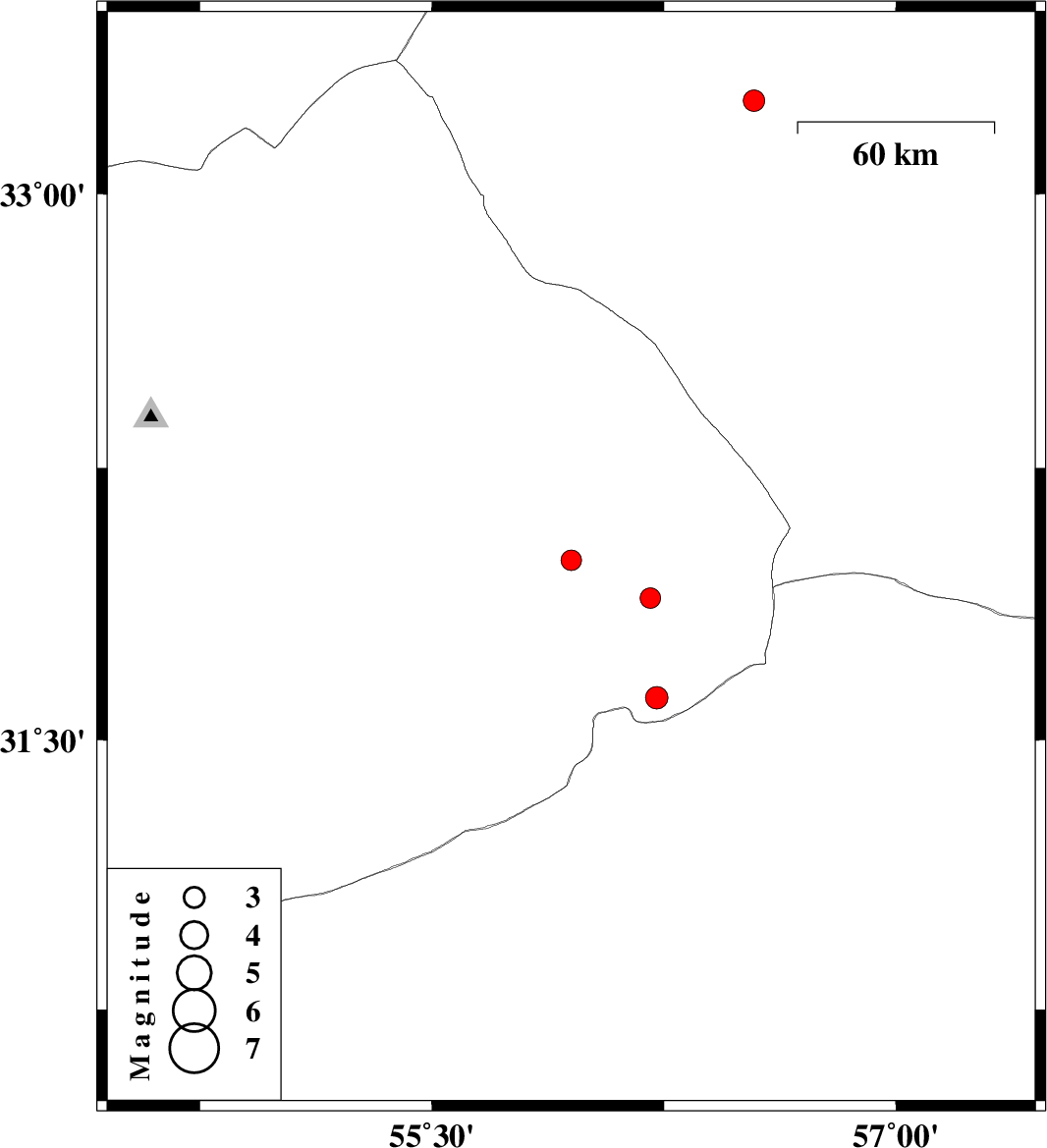 | 2022/02/03 | 21:21:08.2 | 00:51:08.2 | 33.253 | 56.541 | 12 | ML3.1 | Yazd Province, 53 km South-West of Tabas | ||