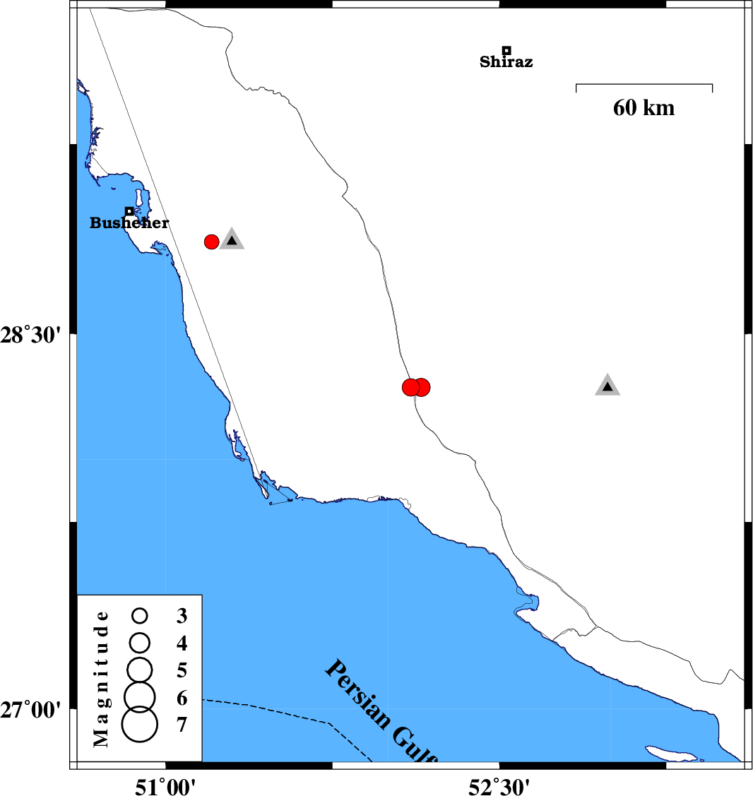 | 2022/02/16 | 15:08:41.8 | 18:38:41.8 | 28.287 | 52.102 | 12 | ML3.5 | Bushehr Province, 51 km North of Bandar-e kangan | ||