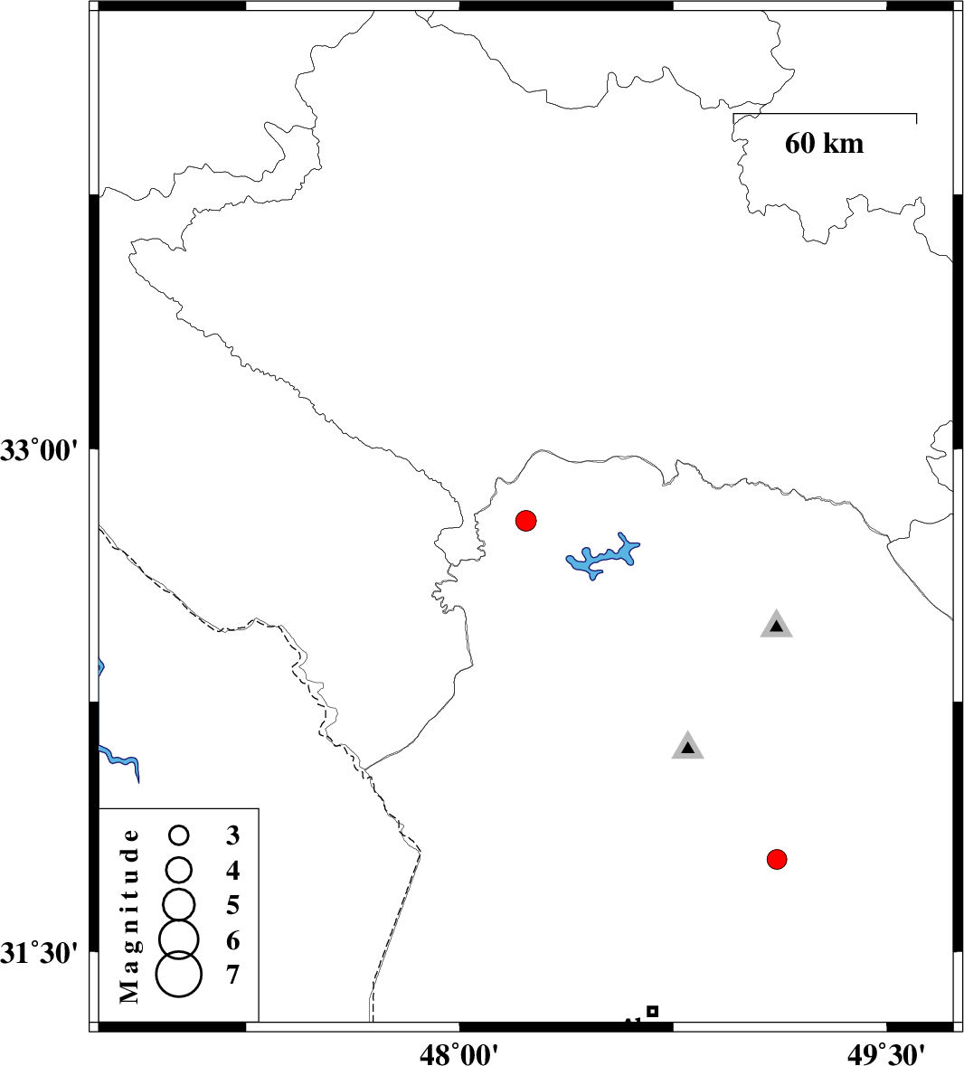 | 2022/02/17 | 09:35:40.3 | 13:05:40.3 | 32.788 | 48.233 | 10 | ML3.3 | Khoozestan Province, 38 km North-West of Andimeshk | ||