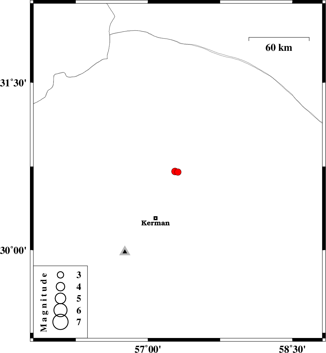 | 2022/03/01 | 00:39:59.3 | 04:09:59.3 | 30.707 | 57.281 | 12 | ML3.2 | Kerman Province, 50 km North-East of Kerman |