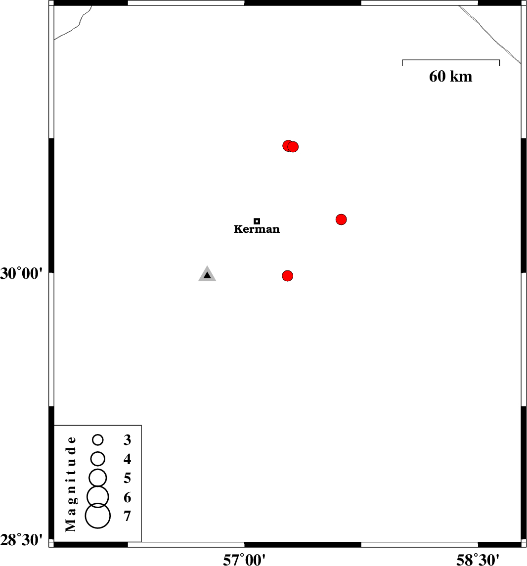 | 2022/03/01 | 00:39:59.3 | 04:09:59.3 | 30.707 | 57.281 | 12 | ML3.2 | Kerman Province, 50 km North-East of Kerman | ||