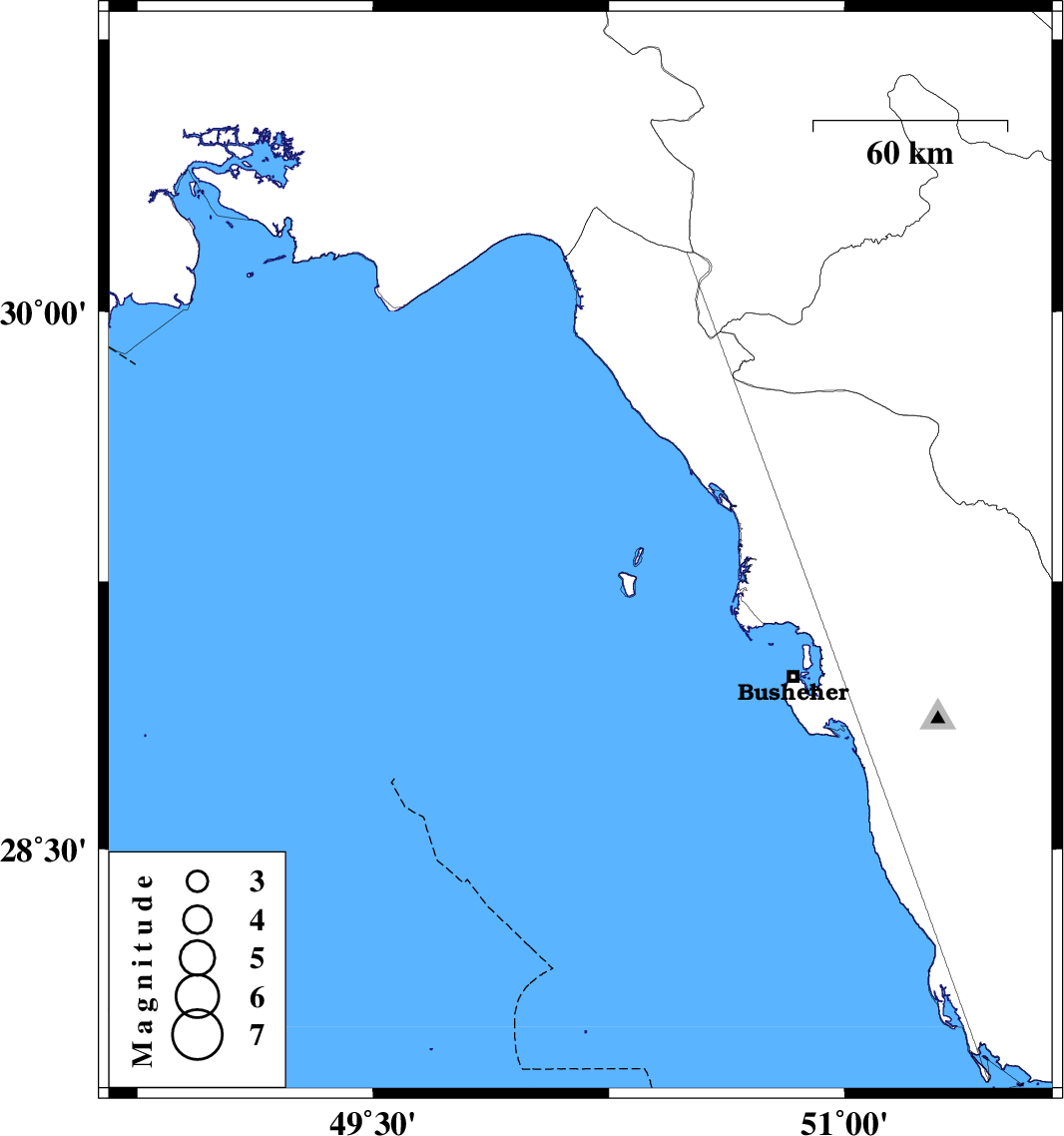 | 2022/04/11 | 08:43:44.6 | 13:13:44.6 | 29.328 | 50.16 | 9 | ML3.3 | Persian Gulf, 44 km South-West of Bandar-e genaveh |