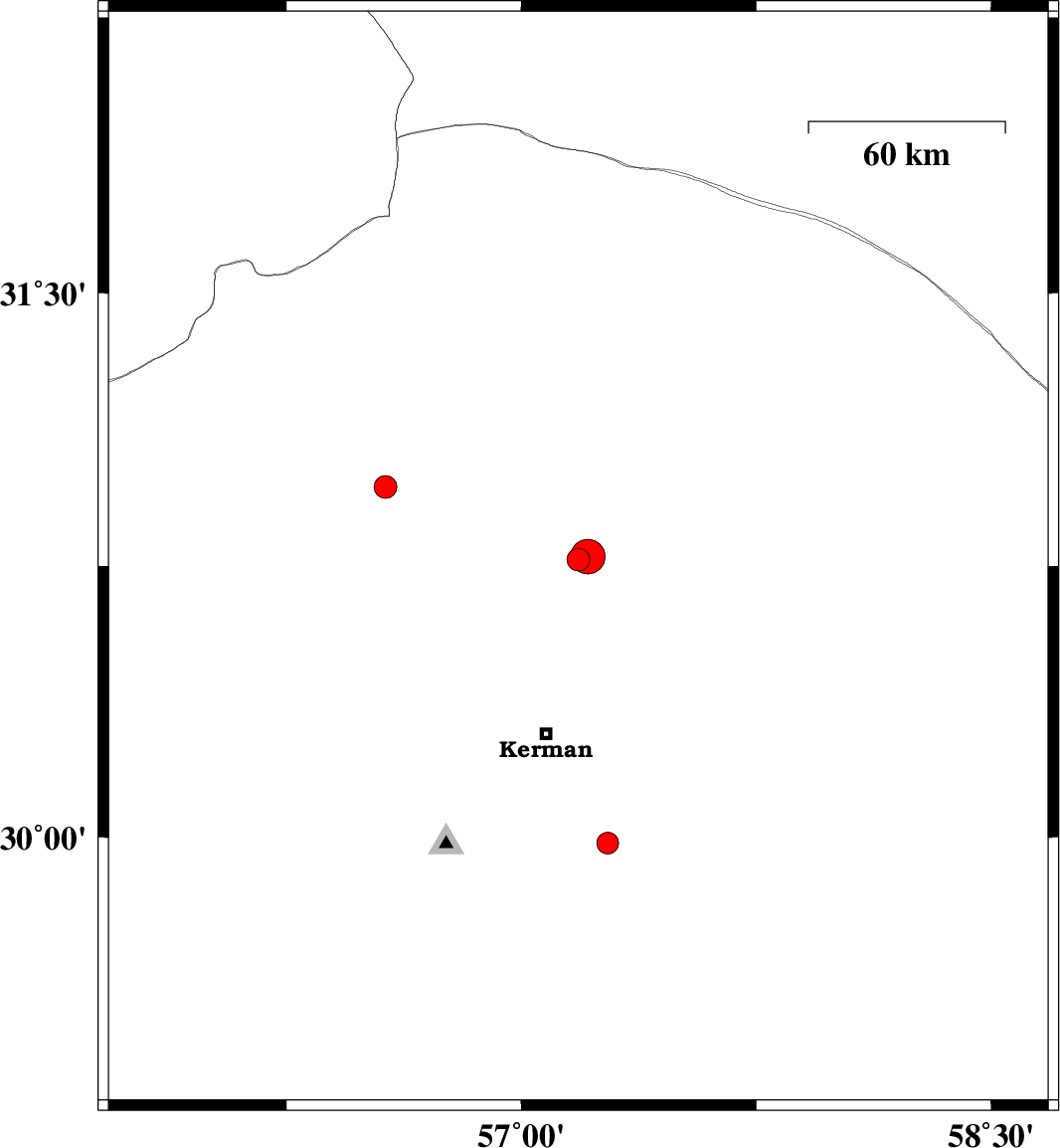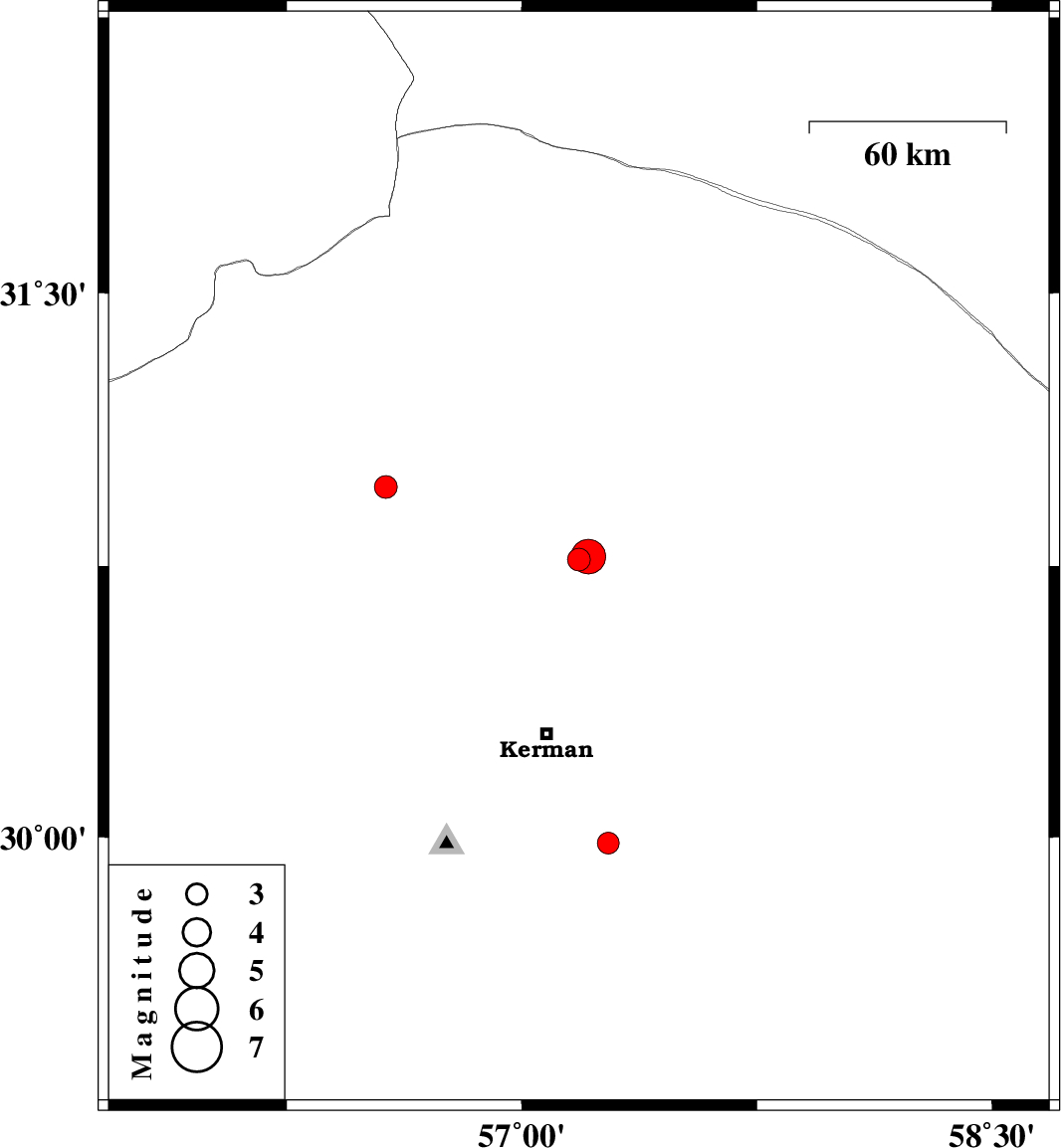 | 2022/03/19 | 08:50:00.4 | 12:20:00.4 | 29.983 | 57.276 | 12 | ML3.1 | Kerman Province, 39 km South-East of Kerman |