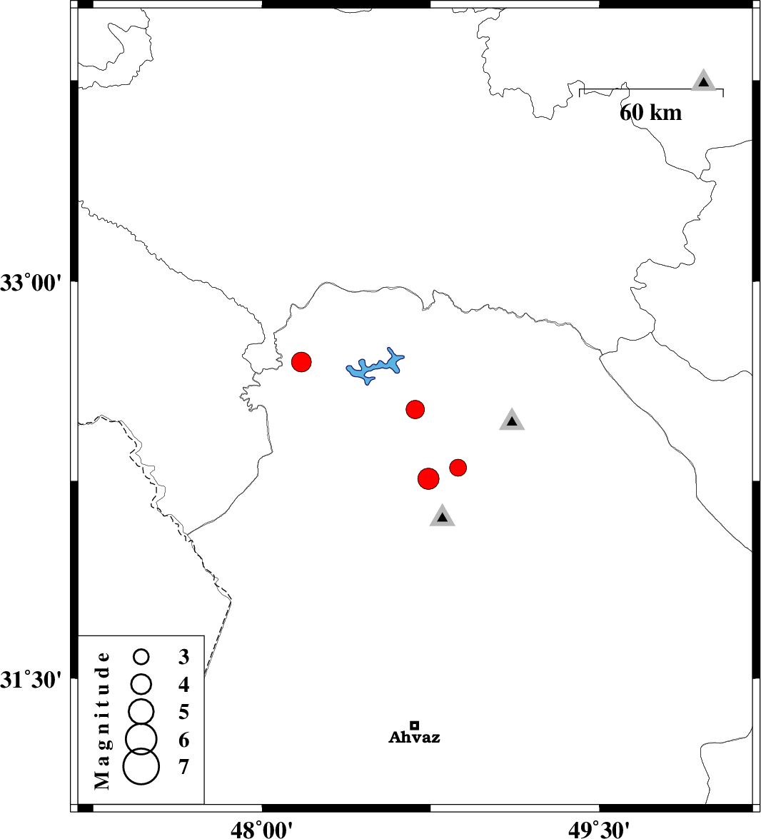 | 2022/03/31 | 08:21:53.8 | 12:51:53.8 | 32.698 | 48.175 | 27 | ML4 | Khoozestan Province, 31 km North-West of Andimeshk |