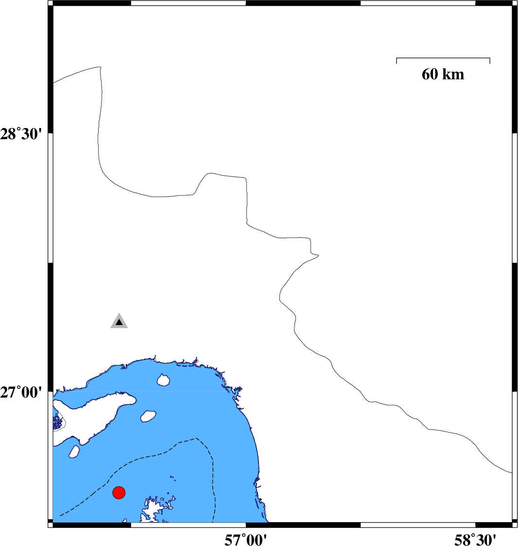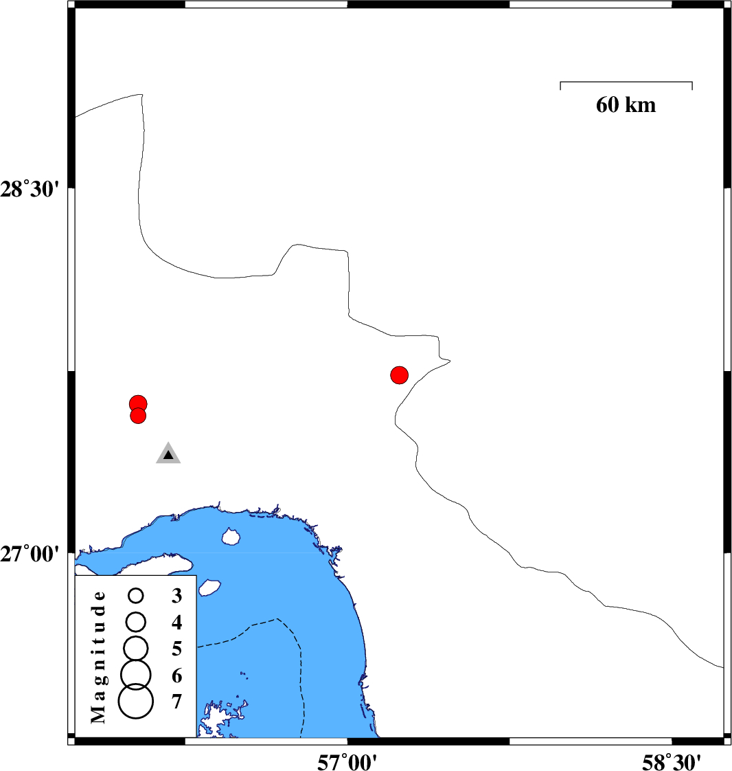 | 2022/04/27 | 19:30:12.2 | 00:00:12.2 | 27.732 | 57.24 | 14 | ML3.7 | Hormozgan Province, 34 km North of Dehbarez | ||
