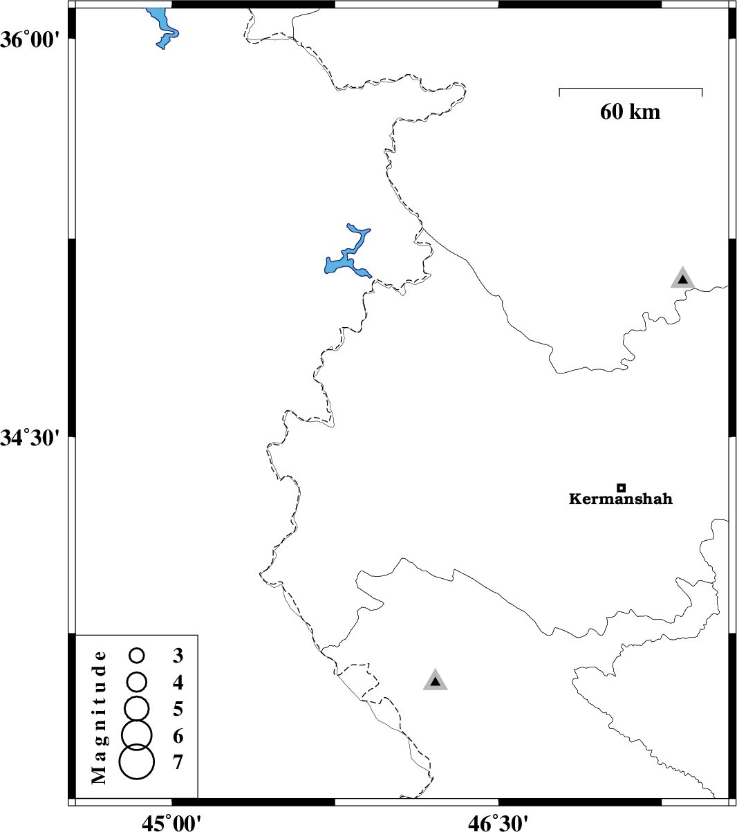 | 2022/05/13 | 16:42:45.3 | 21:12:45.3 | 34.614 | 46.057 | 12 | ML3.6 | Kermanshah Province, 23 km North-East of Sar-e pol-e zahab |