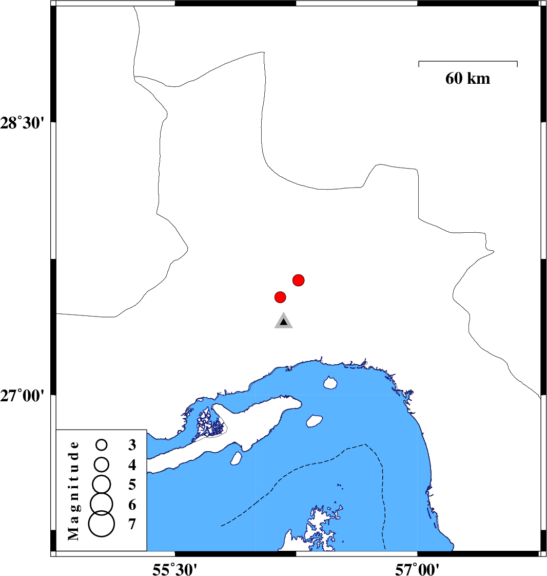 | 2022/05/16 | 23:11:34.3 | 03:41:34.3 | 27.632 | 56.264 | 12 | ML3.2 | Hormozgan Province, 50 km North of Bandar-e abbas |