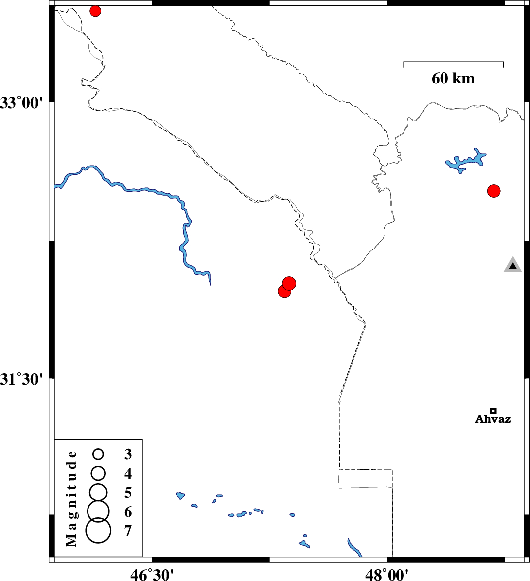 | 2022/04/25 | 07:39:24.3 | 12:09:24.3 | 32.519 | 48.681 | 12 | ML3.6 | Khoozestan Province, 32 km -East of Andimeshk |