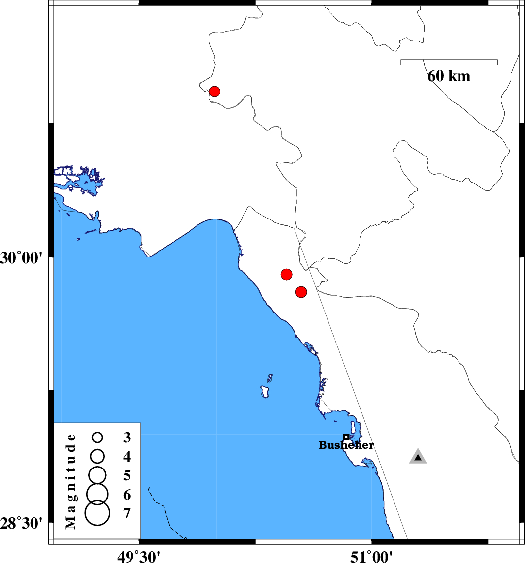 | 2022/05/24 | 21:18:31.8 | 01:48:31.8 | 29.804 | 50.546 | 7 | ML3.3 | Bushehr Province, 26 km North of Bandar-e genaveh |
