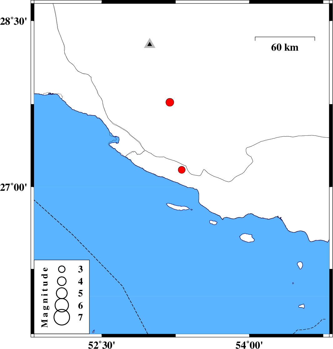 | 2022/05/24 | 13:35:02.2 | 18:05:02.2 | 27.767 | 53.191 | 15 | ML3.6 | Fars Province, 48 km North of Lamerd |