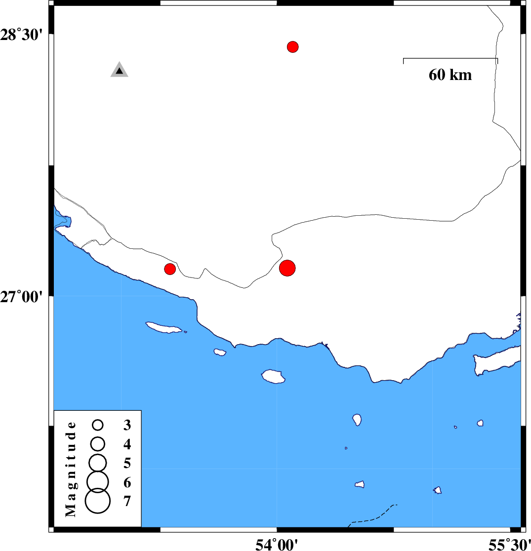 | 2022/05/29 | 10:23:16.0 | 14:53:16.0 | 27.155 | 53.312 | 12 | ML3.3 | Hormozgan Province, 24 km South-East of Lamerd |