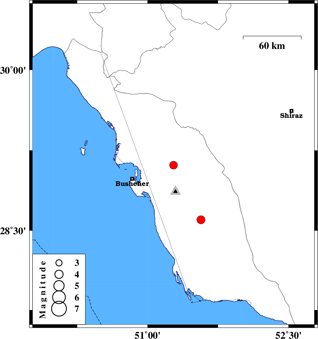 | 2022/06/04 | 11:02:29.2 | 15:32:29.2 | 28.601 | 51.568 | 10 | ML3.9 | Bushehr Province, 20 km -East of Khormog |