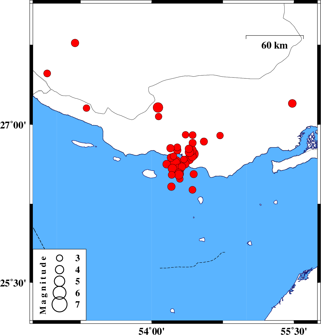 Persian Gulf, 63 km -West of Bandar-e lengeh | |
