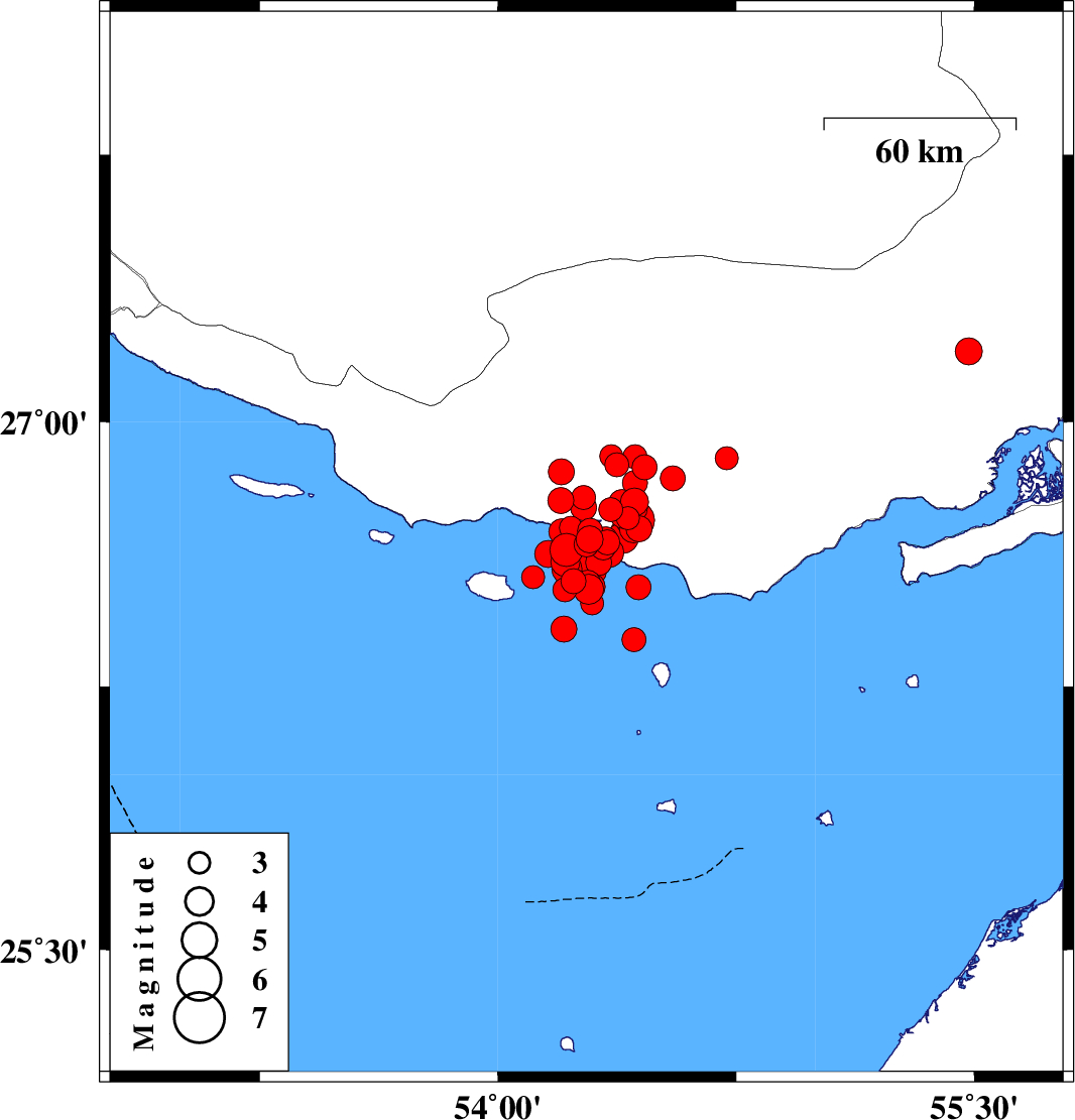 Persian Gulf, 63 km -West of Bandar-e lengeh | |