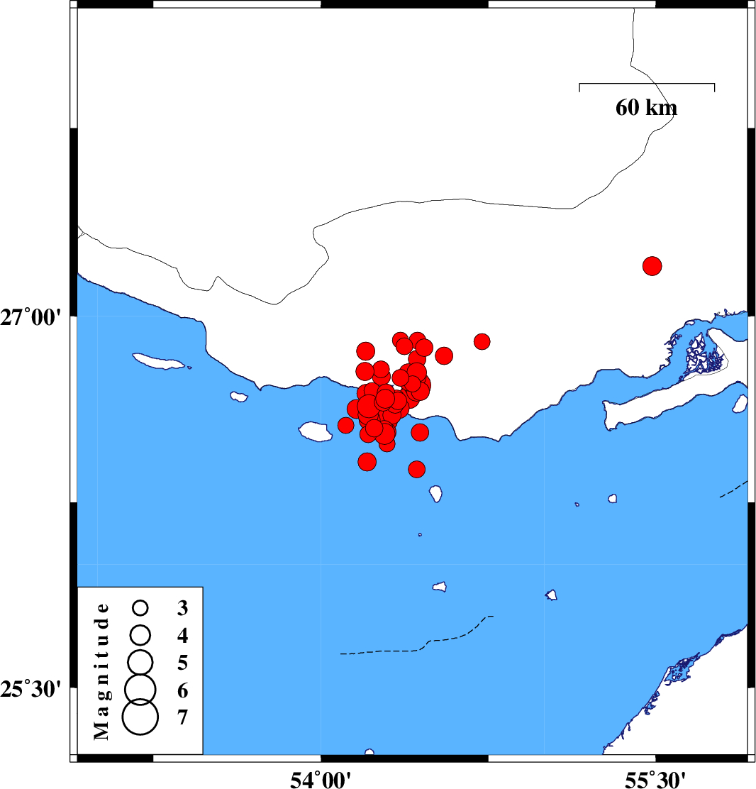 Persian Gulf, 63 km -West of Bandar-e lengeh | |