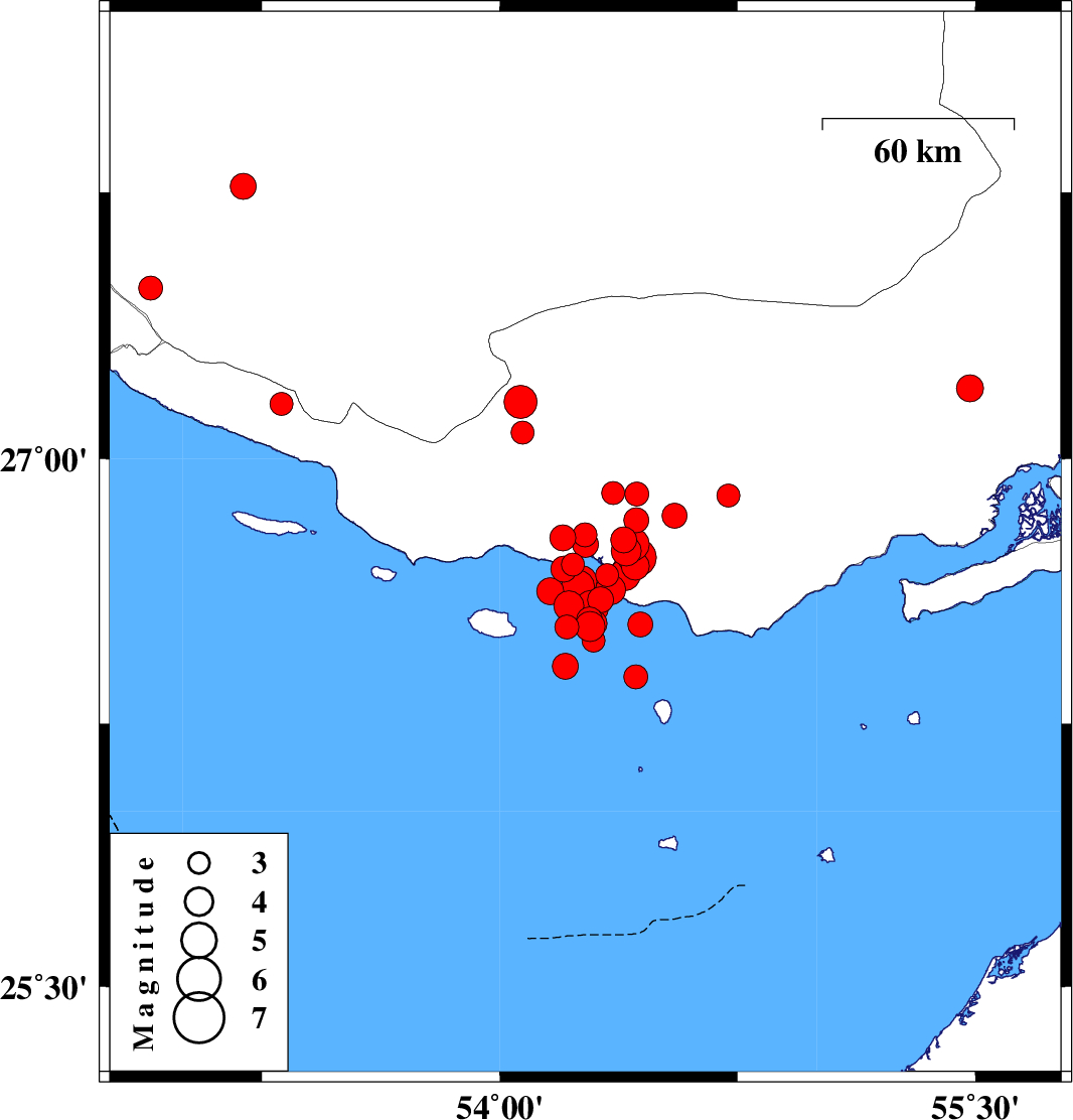 Persian Gulf, 63 km -West of Bandar-e lengeh | |