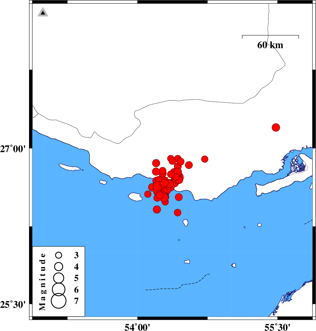 Persian Gulf, 63 km -West of Bandar-e lengeh | |