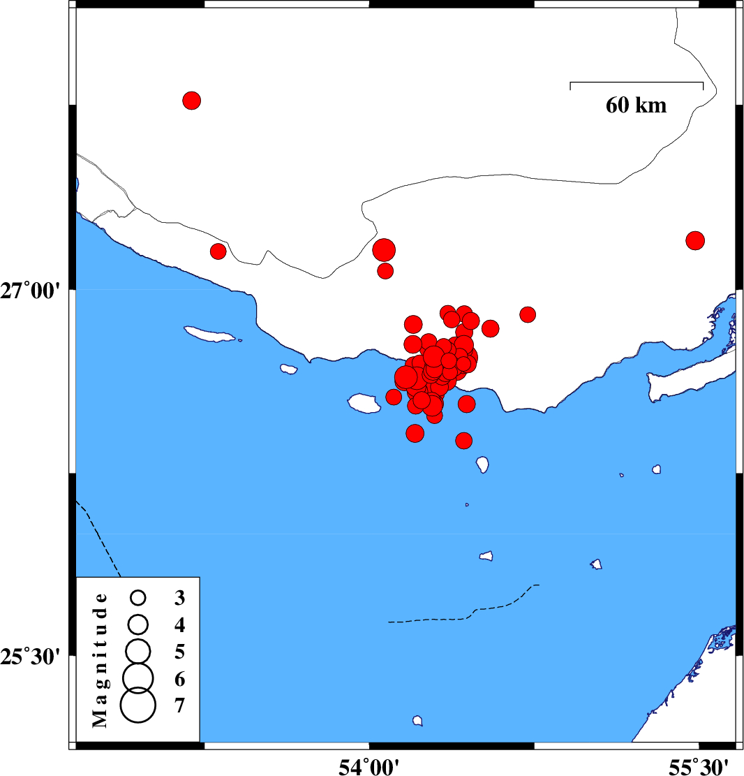 Persian Gulf, 63 km South-West of Bastak | |