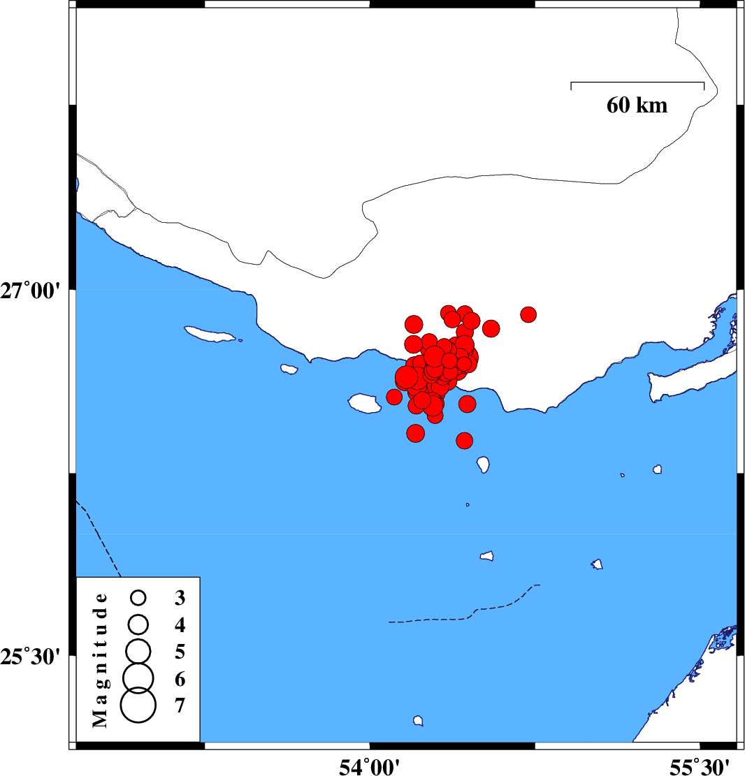 Persian Gulf, 55 km -West of Bandar-e lengeh | |