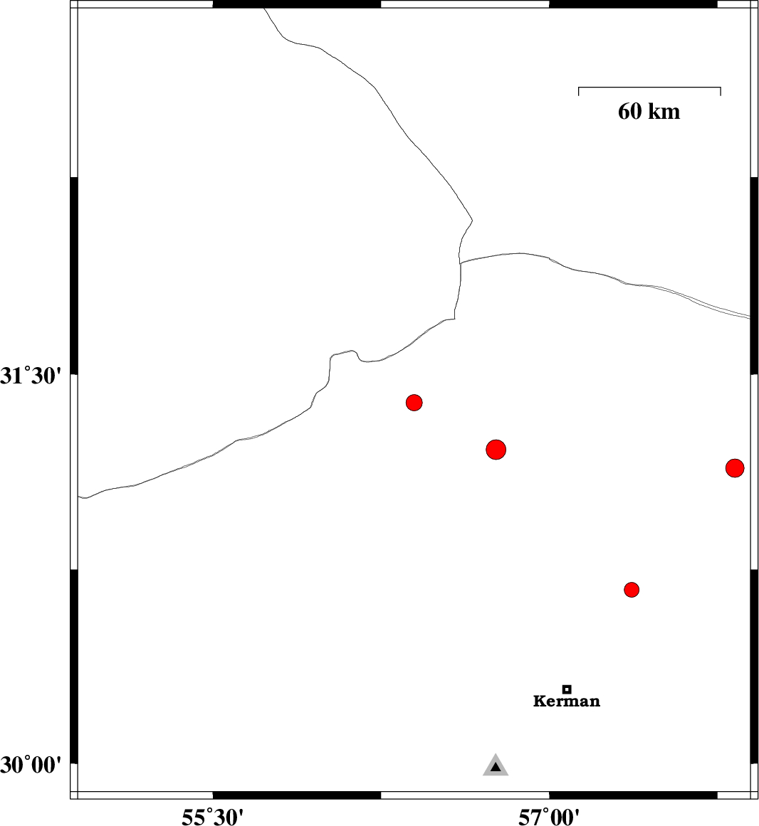 | 2022/06/12 | 12:13:32.1 | 16:43:32.1 | 31.211 | 56.762 | 12 | ML3.9 | Kerman Province, 8 km of Ravar |