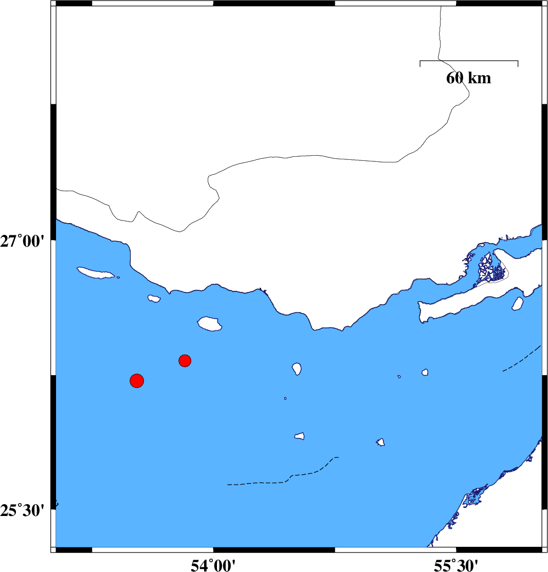 Persian Gulf, 63 km South-West of Bastak | |