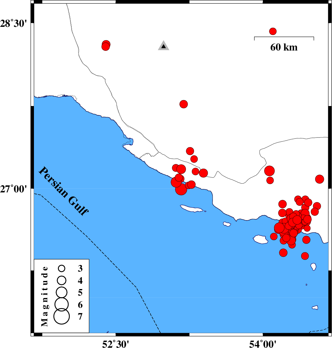 2022/06/16 00:26:04.8 04:56:04.8 26.77354.4310 ML4 Hormozgan Province, 48 km South of Bastak