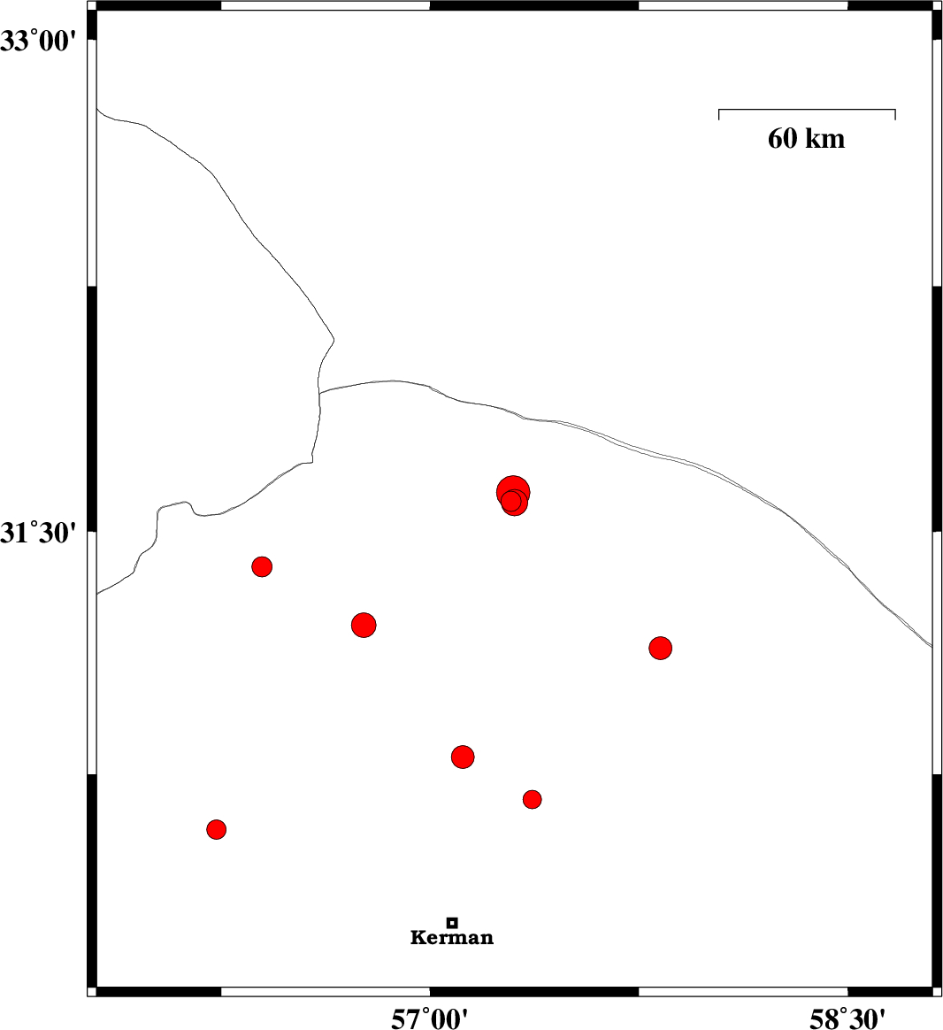 2022/05/27 18:36:32.9 23:06:32.9 30.80357.11812 ML3.7 Kerman Province, 57 km North of Kerman