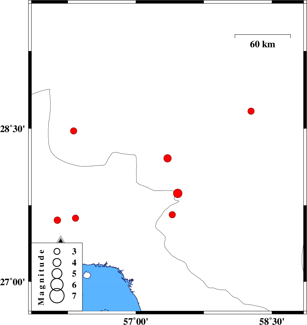 2022/06/08 00:53:52.8 05:23:52.8 28.66958.2715 ML3.2 Kerman Province, 50 km South of Bam