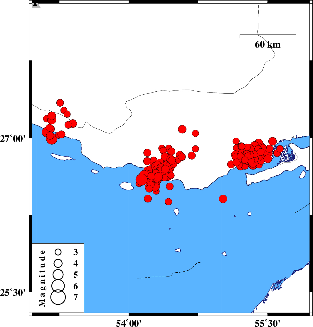 2022/06/16 00:26:04.8 04:56:04.8 26.77354.4310 ML4 Hormozgan Province, 48 km South of Bastak