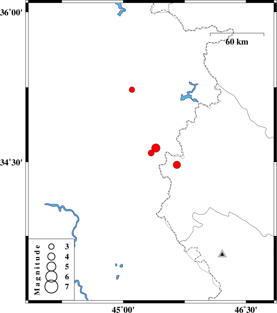 | 2022/07/05 | 13:43:37.7 | 18:13:37.7 | 34.471 | 45.656 | 12 | ML4.1 | Kermanshah Province, 8 km of Qasr-E-Shirin | ||