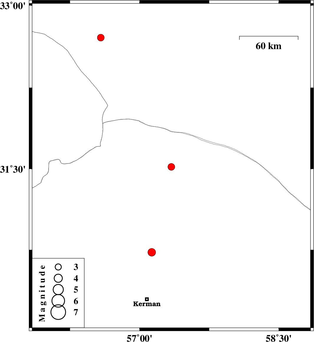 | 2022/08/06 | 15:52:46.5 | 20:22:46.5 | 30.726 | 57.131 | 12 | ML3.8 | Kerman Province, 49 km North of Kerman |